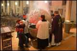Kurz vor Ende des Gottesdienstes richtete unsere ehemalige Mesnerin ihr Wort nochmals an die versammelte Gemeinde und berichtete über ihre Erlebnisse mit dem renovierungsbedürftigen Gotteshaus. Als ersten Schritt spendete sie selbst 500,- Euro für die Außensanierung der Kirche. Wenn es ihr Viele gleichtun, soll Schneeschippen auf dem Dachboden, wie sie selbst es einst hatte tun müssen, möglichst bald der Vergangenheit angehören, so hofft sie. Der Verein der ehemaligen Messdiener kam ihrem Wunsch gerne nach und spendete ebenfalls noch einmal 500,- Euro für die Sanierung der Kirche.
