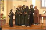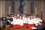 Mit Ministranten und ehemaligen „Minis“ waren sämtliche Instrumentalensembles besetzt. Der neue, etwa 70-köpfige Ministrantenchor faszinierte mit seinem Können, vor allem mit „The Rose“ von Amanda McBroom, angeblich der beste Filmsong. Zu verdanken ist der zweistündige Genuss auch den bewährten Dirigenten Markus Zepp und Sabine Knebel. Der Begeisterung nach zu urteilen dürfte eine ansehnliche Spendeneinnahme für das ehrgeizige Weihrauchfassprojekt zustande gekommen sein. Für die weiblichen Gäste gab's stilvoll langstielige Rosen: so rot wie die Röcke der Messdiener. |