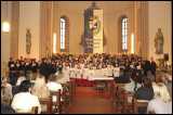 Sechs Chorformationen, mehrere Gesangssolisten und 15 Musiker an verschiedenen Instrumenten gehörten zu den Mitwirkenden: Insgesamt - zu sehen beim Finale - standen mehr als 200 Akteure auf den Altarstufen. Für das Gemeinschaftserlebnis sorgten der neue bärenstarke Ministrantenchor, die elfköpfige "Mönch-Choralschola" und der stimmgewaltige Chor der „Wissädälä Fasänachdä". Zum großen runden Erfolg trugen der Kirchenchor, dessen kleiner Chor "Piccoletto" und das Vokalensemble der Musikschule Waghäusel-Hambrücken bei. |