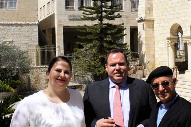 Übergabe der Spende in Bir Zait Jasmin Groß, Johannes Groß, Abouna Louis Hazboun |