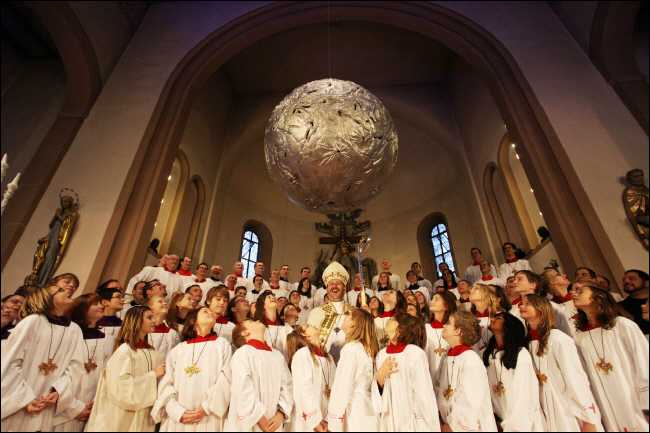 Die Ministranten von St. Jokodus hatten sich nicht nur zum Ziel gesetzt, das vermutlich größte schwenkbare Weihrauchfass der Welt zu bauen, sondern es sollte auch ein Kunstwerk werden, dass der Liturgie angemessen ist. Der erstmals verliehene Kunstpreis der Erzdiözese Freiburg machte sie auf den Künstler Otfried Kallfass aufmerksam, den der gebürtige Breisacher mit einer Monstranz aus Pappe gewonnen hatte. Er lieferte einen Entwurf, der die Ministranten begeisterte und die Leserbriefschreiber auf den Plan rief: Eine Aluminiumkugel in Planetenform und ein Spaceshuttle als Weihrauchschiffchen. Ob es nun zu teuer, zu groß, zu modern oder zu anders ist – für Abt Michael Reepen ist das Weihrauchfass ein Anschauungsobjekt christlichen Lebens: „Wenn Paulusschreibt: ,Wir sind Christi Wohlgeruch‘, dann heißt das heute, wir alle sollen uns verbrennen lassen und den Weihrauchduft Christi verbreiten. Wir alle sollen Ministranten sein. Wir alle sind Weihrauchfass – zur Freude der Menschen und zur größeren Ehre Gottes.“ |